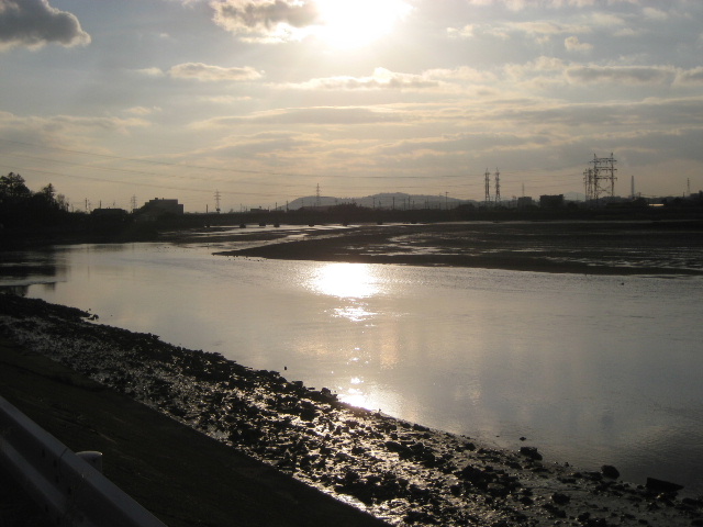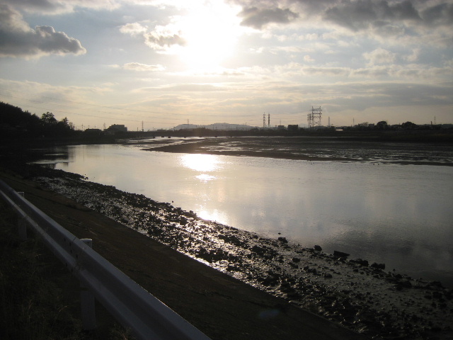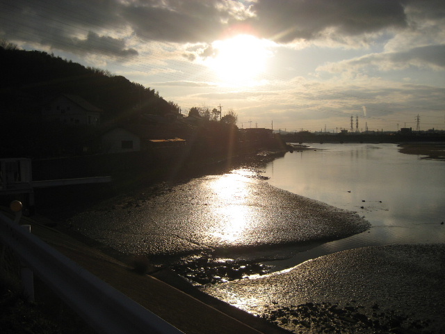 干潟自体は薄黒い泥色で、普段は眺めて美しいものではないのだが、夕日に浴びることで全体が金色になる。もう少し性能の良いカメラで撮影位置などを工夫すれば秀麗な題材の写真が撮れそうだ。