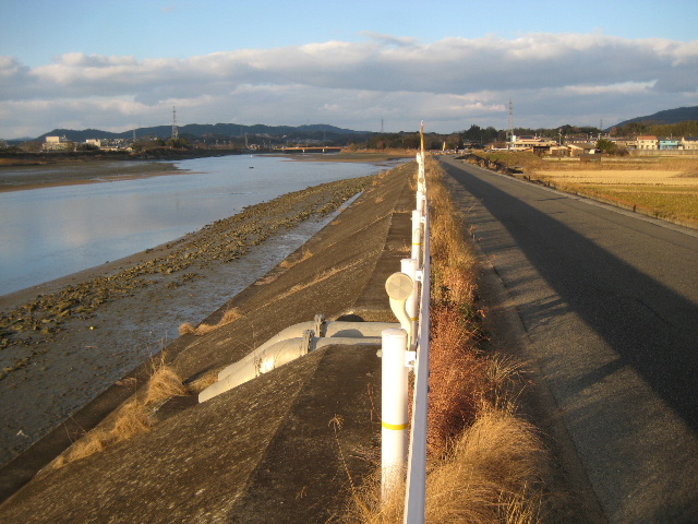本路線の経路の殆どは厚東川左岸の堤防上で占められる。行きよりも帰りの方が疲れているので、アジトに帰る折りに上条の峠越えをしたくないときによく通る。記事公開日:2014/1/18