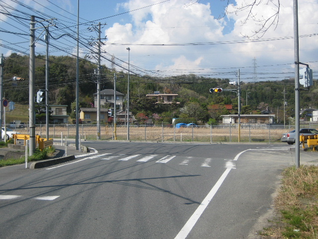 県道との交差点。ここが市道の終点である。かつて正面の空き地に中山浄水場関連の設備があった。