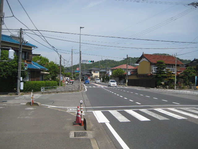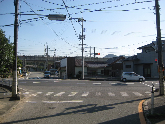 国道の反対側から市道の入口を写しています。既に新幹線の高架橋が見えています。