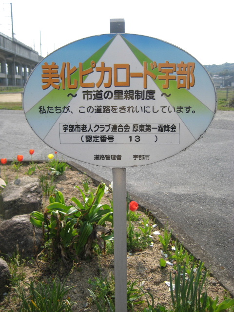 「美化ピカロード宇部」の認定板です。