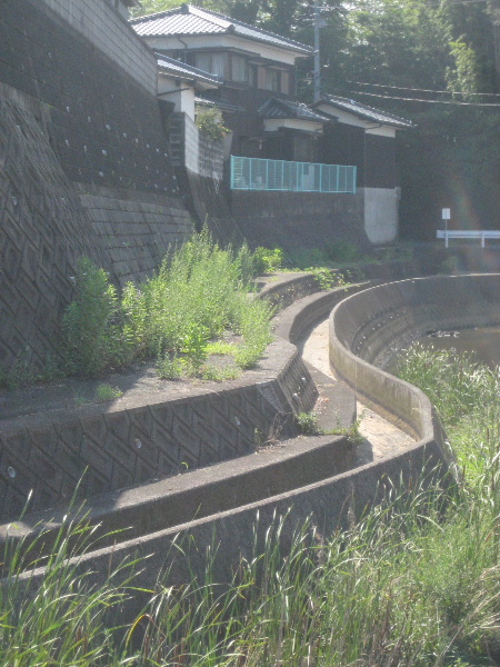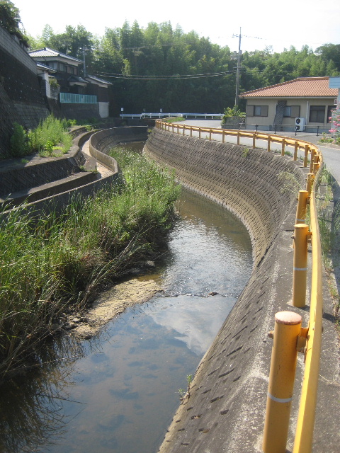 この市道とは直接関係はないが、中山川の一段高い位置にコンクリートの水路が設置されている。