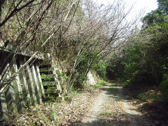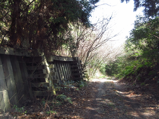 先ほど砂利道を下っているときも左側に練積ブロックの擁壁があった。あのタイプの擁壁が現れるのは昭和50年代から後である。この擁壁は更に後のものだから、安全に通行できるように近年でもそれなりに維持管理されているようだ。