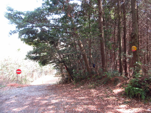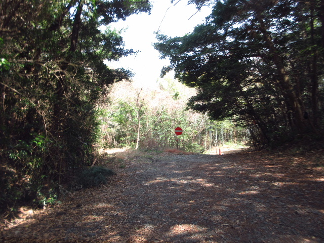 先を調べるなら車を再び転回したい。しかしここから乗り入れたとき、道がどうなっているか分からない。今の場所は余裕で転回できるほど広いが、この先で突然施錠された門扉が現れ、転回することもできず延々とバックで戻るなんて悪夢だ…このように、現地では林道かも知れないこの道を先へ進むか、それともここが大浜地区へ降りる場所と考えて山を下っていくか判断しかねていた。あの侵入禁止の標識の前まで戻ったとき、やはりここが大浜地区に降りる場所ではと考え直した。