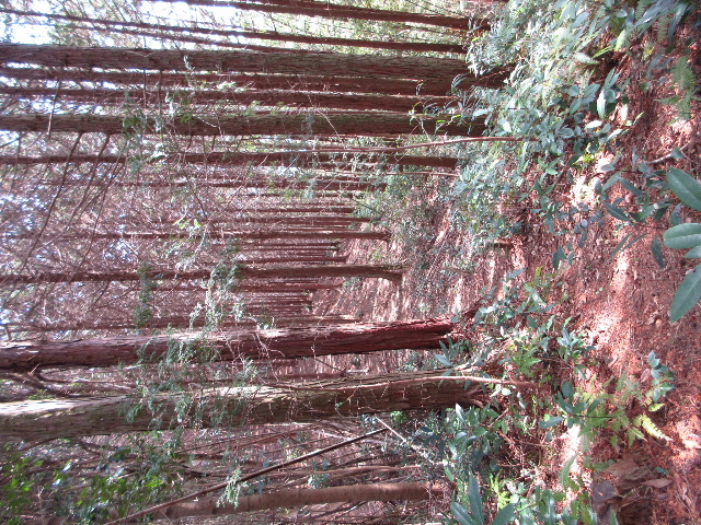 林立する樹木の間に直線的に下っていく道のように見えた。
