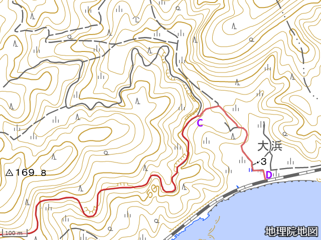 現地に居た時点では、これを下れば大浜地区に到達するという自信が持てなかった。