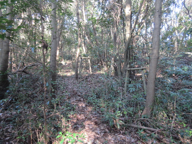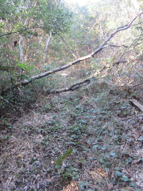 踏み跡は直線的に山頂の方へ向かうと思われたものの先で途切れて藪の中へ消えていた。強引に先へ踏み込めば再び迷ってしまいそうだ。
