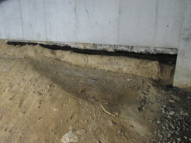建屋のコンクリート下部構造と地面との間には奇妙な隙間ができていた。