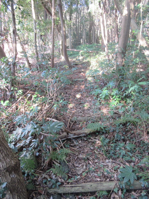 この坂道部分は黒岩観音の奥にあった沢地の上にあたる。雑木が茂っているから分かりづらいだけでここからでもまだ御堂の裏側が見えていた。以前一度歩いていることもあり道中に不安はない。