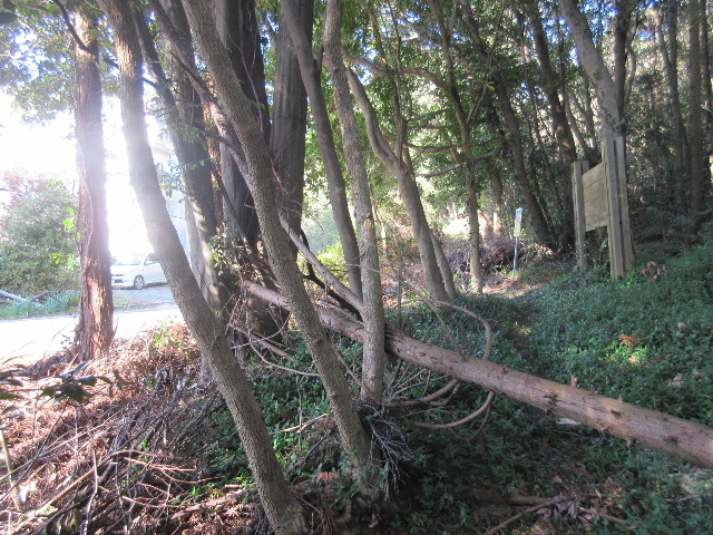 劈頭いきなり中規模の倒木が道を塞いでいた。前回来たときは自転車担ぎ歩きでココランドまで抜けたのだが、今となってはそれも困難である。
