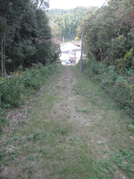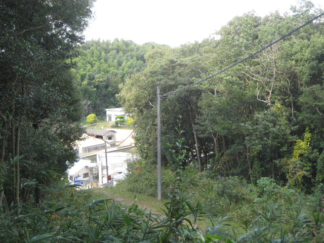 ケーブルカーの索道のようなきつい斜路が中山浄水場まで降りている。
