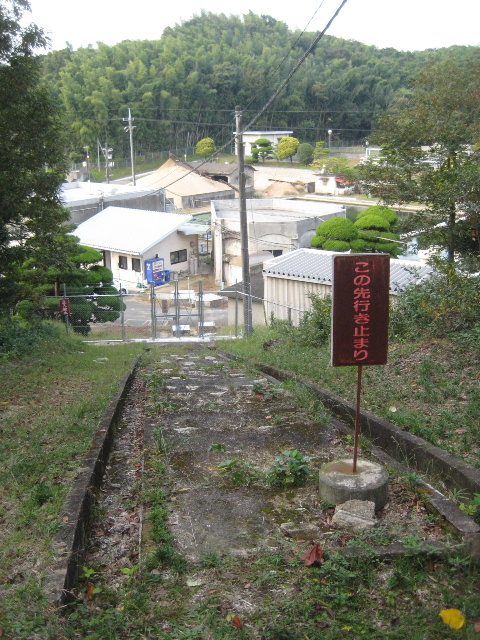 この後引き続き市道攻略を進めるし、何よりもこのきつい斜路は自転車にはまったく馴染まない。そこで斜路の下からでも見える場所に留守番させ、歩いて斜路を降りることにした。