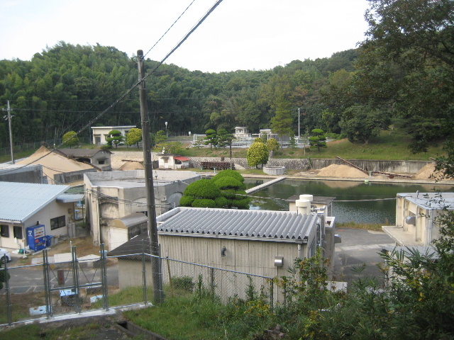斜路から中山浄水場の敷地内は一応見渡せるが…それほど開けた場所でもないので、何枚かに分けて撮影しなければ全体像が入らない。