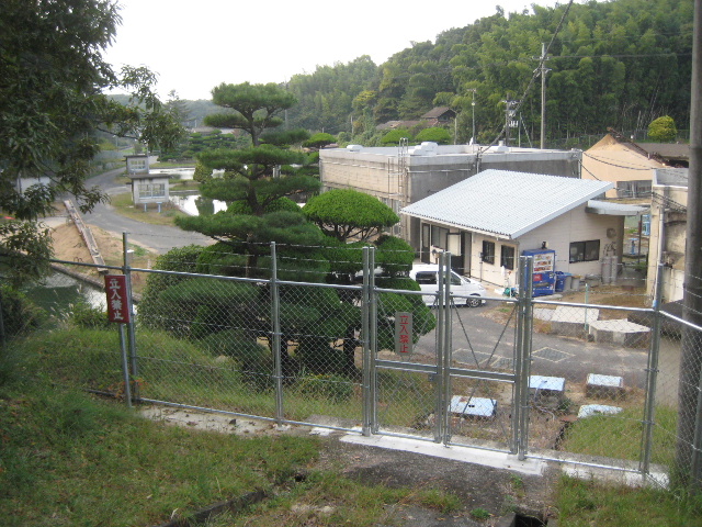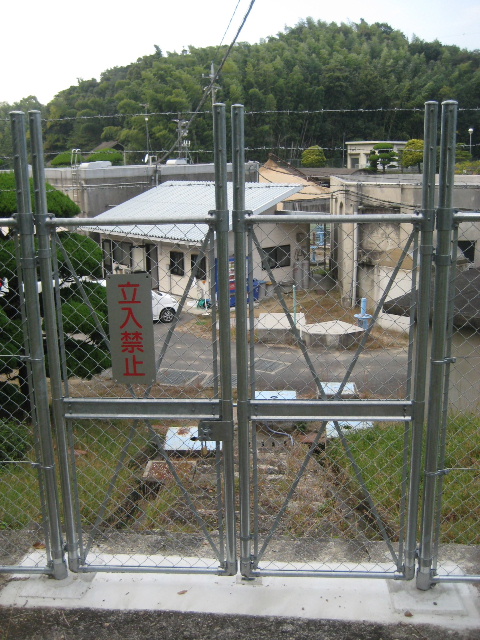 有刺鉄線付きのアルミ門扉はがっちりと施錠されていた。
