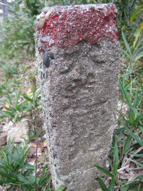 頭を赤くペイントされた痕跡がある。コンクリート製ながら骨材が露出していて見るからに古い。