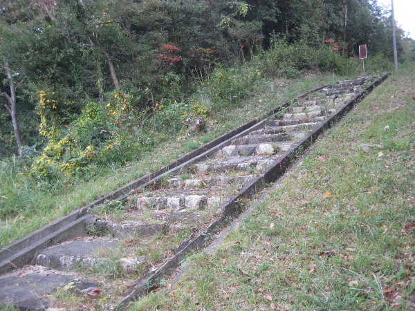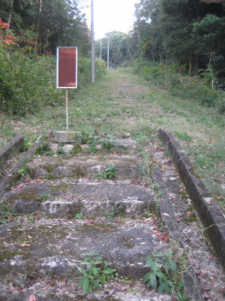 最近誰も歩いたことがなさそうな階段で、苔まみれだった。これは造られた当時のままと言えるのではなかろうか。