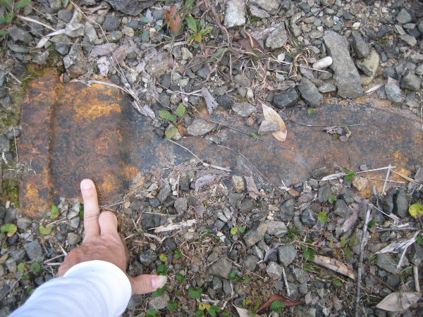戻る途中、斜路に鋳鉄管が露出している場所を見つけた。