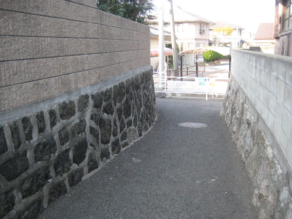 両側のブロック塀は後年のものとしても下部の石積みは昔からこの状態だった。