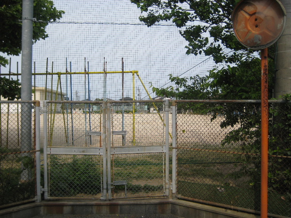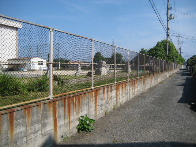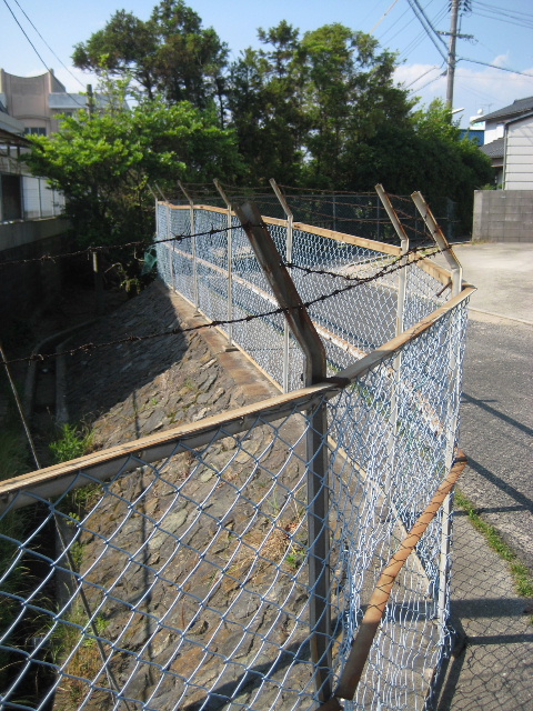 建築ブロック積みの上にネットフェンス2段という仕様だ。支柱から錆が流れ出てかなり古そうだが、それでも東側にあったネットフェンスよりはずっと新しい。