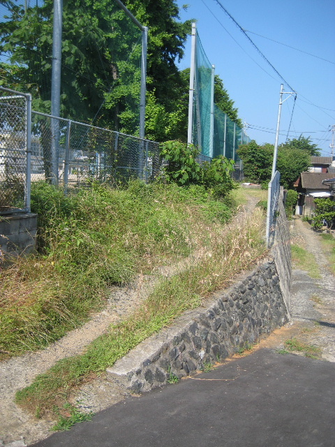 グラウンドに沿って直角に曲がる。ここまで国道から車で乗り入れられるものの、沢地からは家一軒分の高低差がついているから相互に行き来はできない。