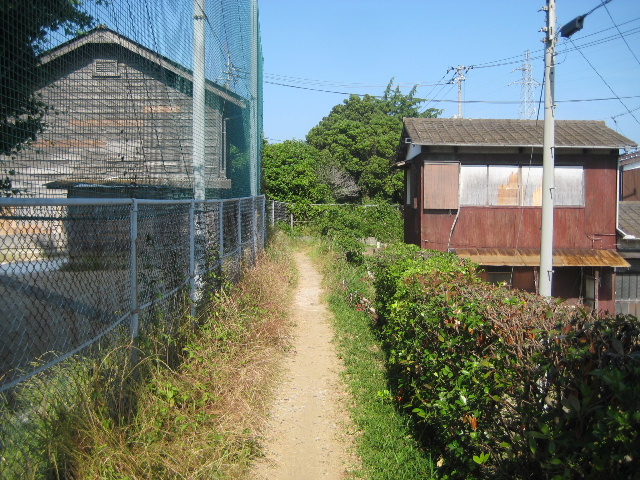 南門の近くにあった元文房具店の横から運動場の外側に沿って伸びる細い道がある。文房具店が跡形もなくなってしまった現在もこの小道だけは当時の姿そのままに今も遺っている。