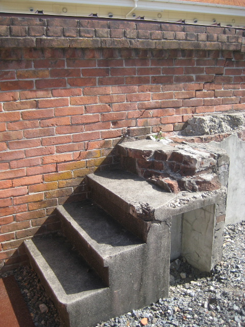 階段はコンクリート製ではなく恐らくレンガで積み上げた階段の表面をモルタル仕上げしたのだろう。