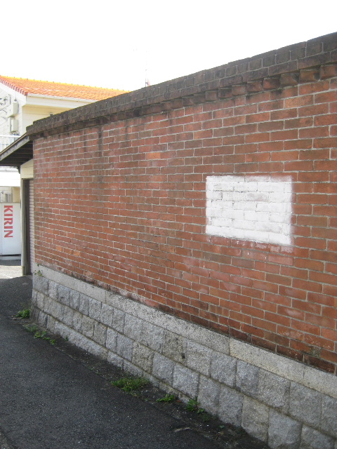 (レンガ塀にある白い抹消の跡は何かは不明)