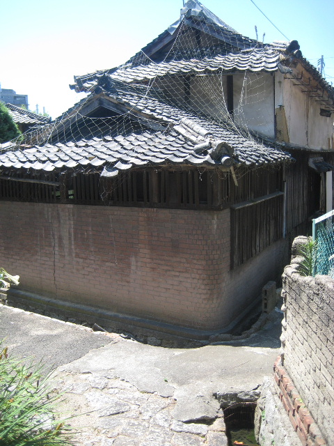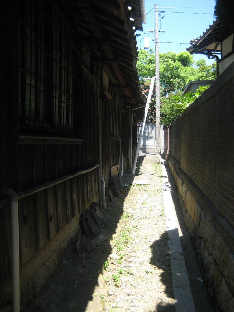 建坪率ほぼ100%で現在だったらまず認可されない程に生活道と民家の軒先が密着している。