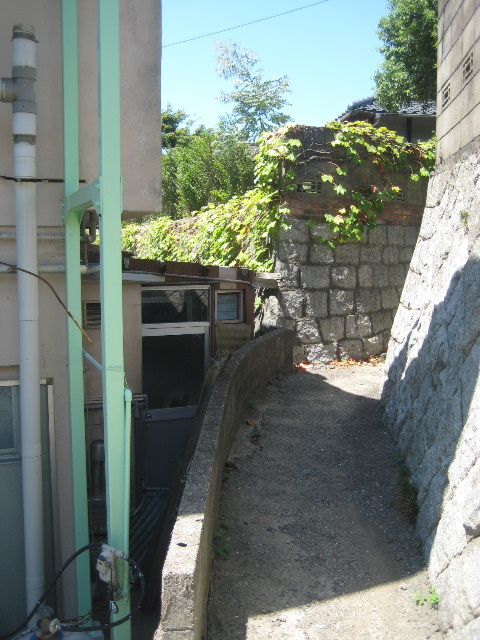 先ほど石畳の坂を登ってきているため、下の土地とは家半軒分ほどの高低差がついている。