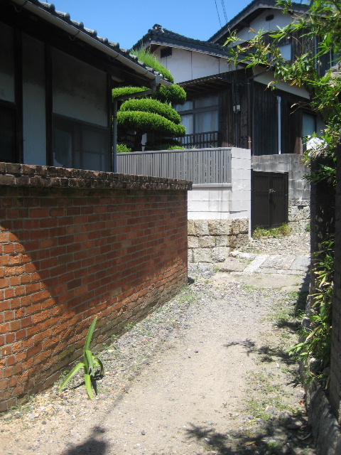 建築ブロックとレンガの塀で、先の到達点よりは若干幅が広く生活道らしい様相だ。