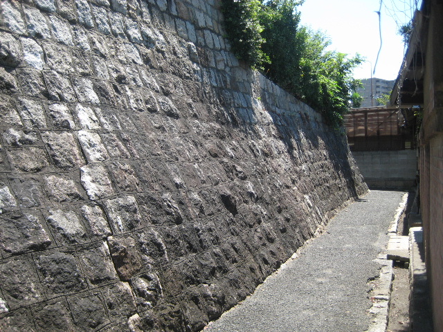 遙か昔に傾斜地を削って敷地を造り、外側を石積みで補強したのだろう。