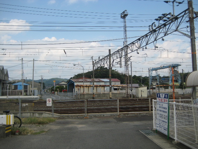 里の尾側の道路線形はこの場所で道が直角に曲がっている。かつては車もこの踏切を通っていたのだろう。