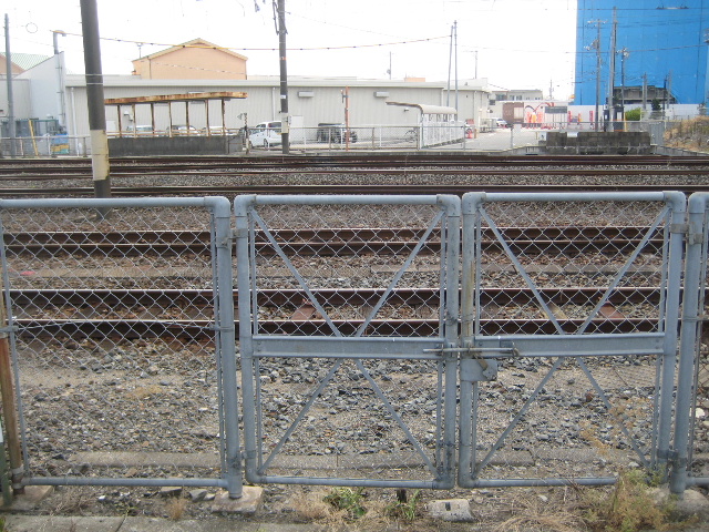 門扉は施錠されており、駅構内の作業で関係者が出入りできるよう門扉の形式にしたようだ。