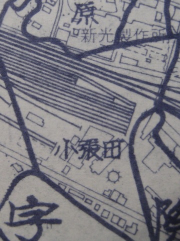 重ね書き絵図にみられる他の小字と位置関係が一致することから、当初の地名が小張田と表記され、読みも「こばりでん」であったことが判明した。