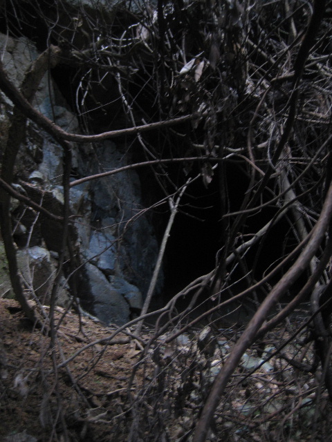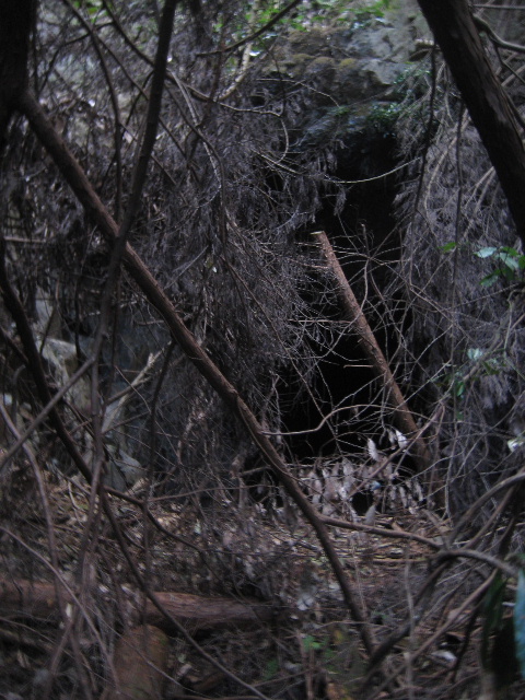 日が射さないから写真は不鮮明だし、湧き水が多いし、何よりもこの伐採樹のせいで坑口の鮮明な写真が撮れない。樹木が倒れて出来た自然の洞ではないかと言われても反論できなさそうだ。