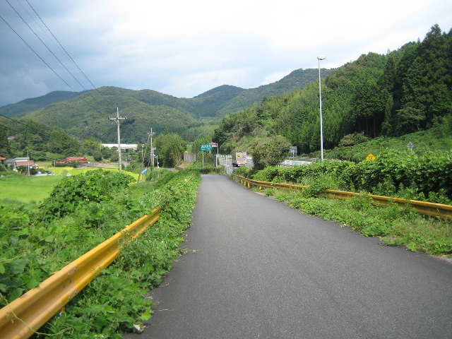 県道は自動車道と接近したり離れたりを繰り返しつつ、根越の集落を抜ける。それから峠に向かって高度を上げ、中国自動車道と並走状態になる。そして県道が最高地点に到達する頃には、自動車道の姿はない。坂を登り詰めることを諦めトンネルで抜けているのである。