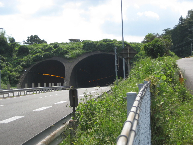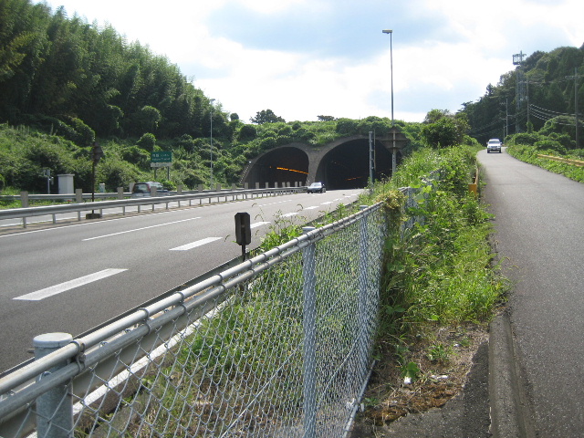 自転車での峠越えはかなりきつく、トンネルで抜ける中国自動車道が恨めしかった。それと同時に、県道の登り坂途中から見えるこのトンネルにこんな不自然さを感じた。
