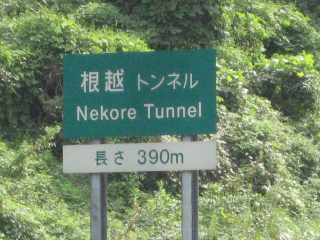順当に行けば「ねこし」「ねごし」と読みたくなるだろう。今の今まで「ねごしトンネル」だと思って読み進まれた方がいらっしゃる筈だ。実際、私も数年前初めて自分の運転でこのトンネル名のローマ字表記を見たとき、何かの間違いではないかと思った。