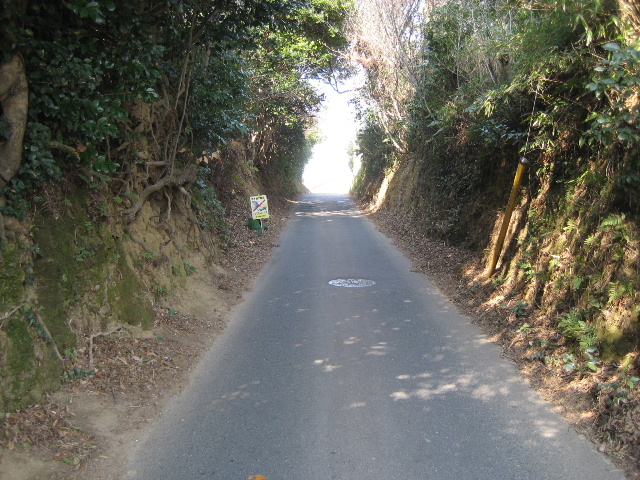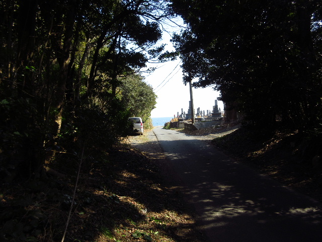 この出口付近に来ると正面に海の水平線が見え始める。
