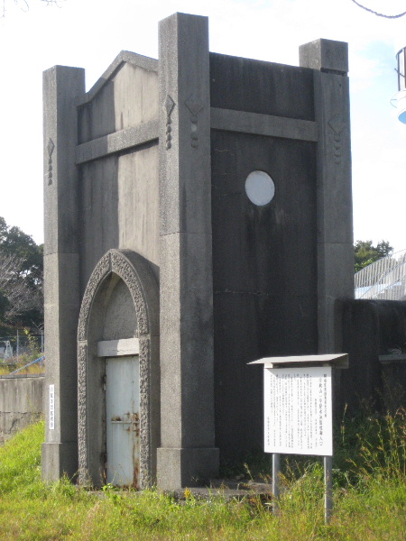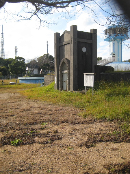 3号配水池展望台入口の横にコンクリートの遺構がみられる。