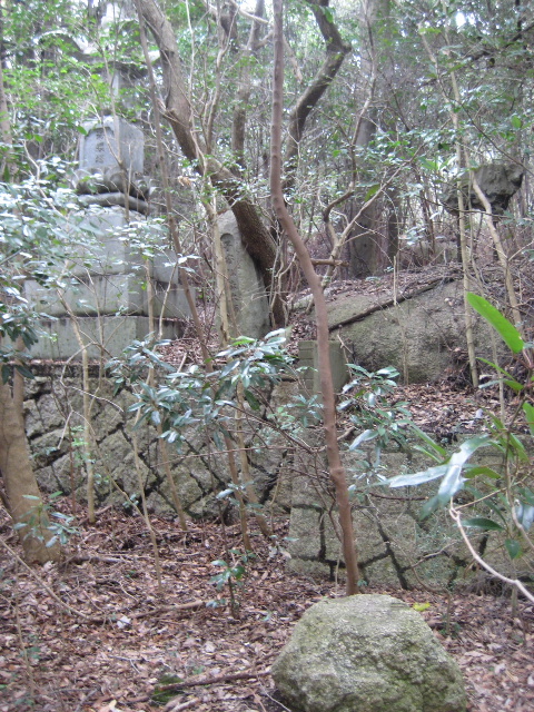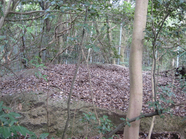 3連続の石段の途中から園路を外れて藪の中を歩けば、あの巨岩の上に到達するのは容易だった。