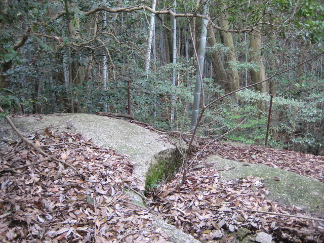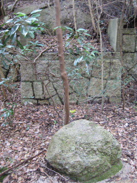 この岩の両脇に建屋の基礎のようなものが遺っていた。