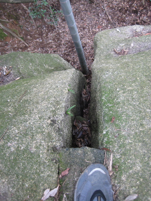 先ほど見た巨岩の割れ部分である。幅10cm程度のクラックが生じている。