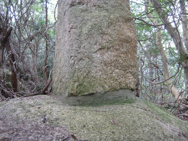 しかし岩の周辺だけまったく木が生えておらず手前には巨岩の角も露出していることから、一枚岩と推測できた。
