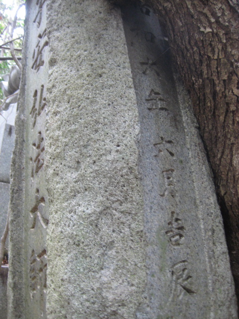 上部は木の幹に隠されて見づらいが昭和六年六月吉辰と読み取れる。