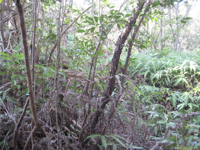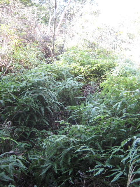 このシダ群生を突っ切った先だったと思う。