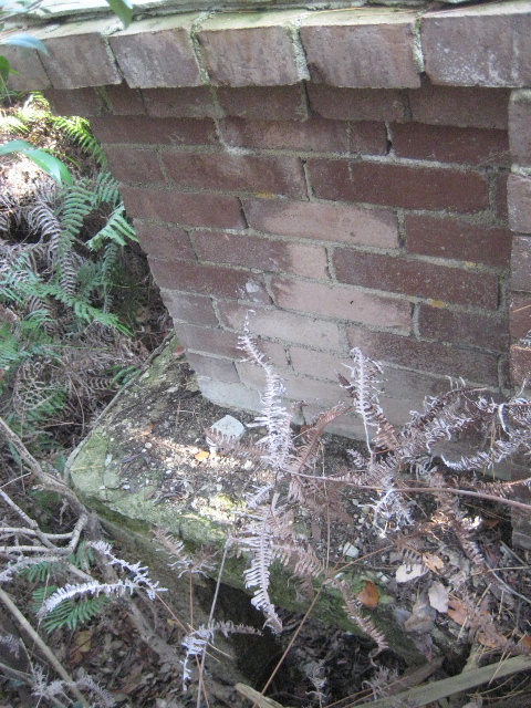 雑木の先へ前回訪れたとき見つけた石積みが見えてきた。