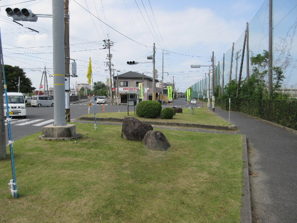 常盤公園への往還路の一つでありながら、この近辺の自転車での通行は甚だ厄介だ。往路は狭い路側で持ち堪えながら我慢して進めば先でインターロッキングの自歩道があるからそこへ移動できる。帰りは背後から車にせっつかれたくなければ自歩道内をゆっくり通ることになる。しかし自歩道が切れる場所から先は右側通行状態になってしまうので、左側へ移動しなければならない。自歩道の先は民家のブロック塀があり、更に先はアパートの駐車場になっているので歩道ができる可能性はゼロである。[1]