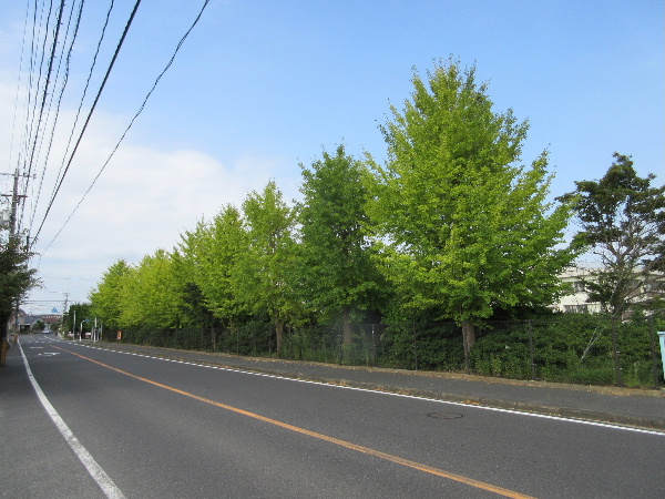 高専のイチョウ並木が美しい。左側に歩道はないが路側幅にゆとりがあり割と安心して走れる区間だ。