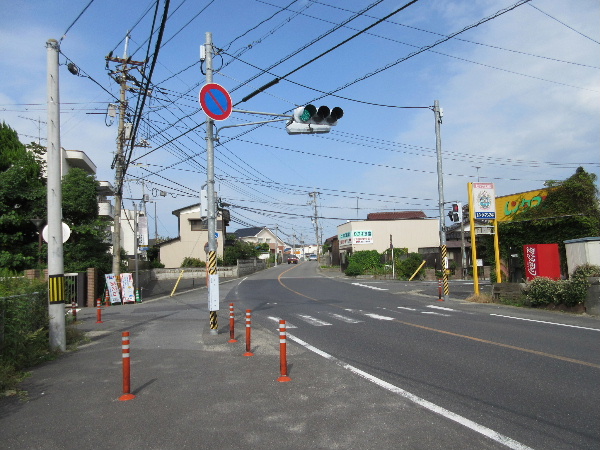 そして本路線のうちでもっとも交通量の輻輳する変則的な交差点に到達する。対面交通規格の主要な路線が2本、一般市道が1本この場所を終点としてまみえる場所だ。